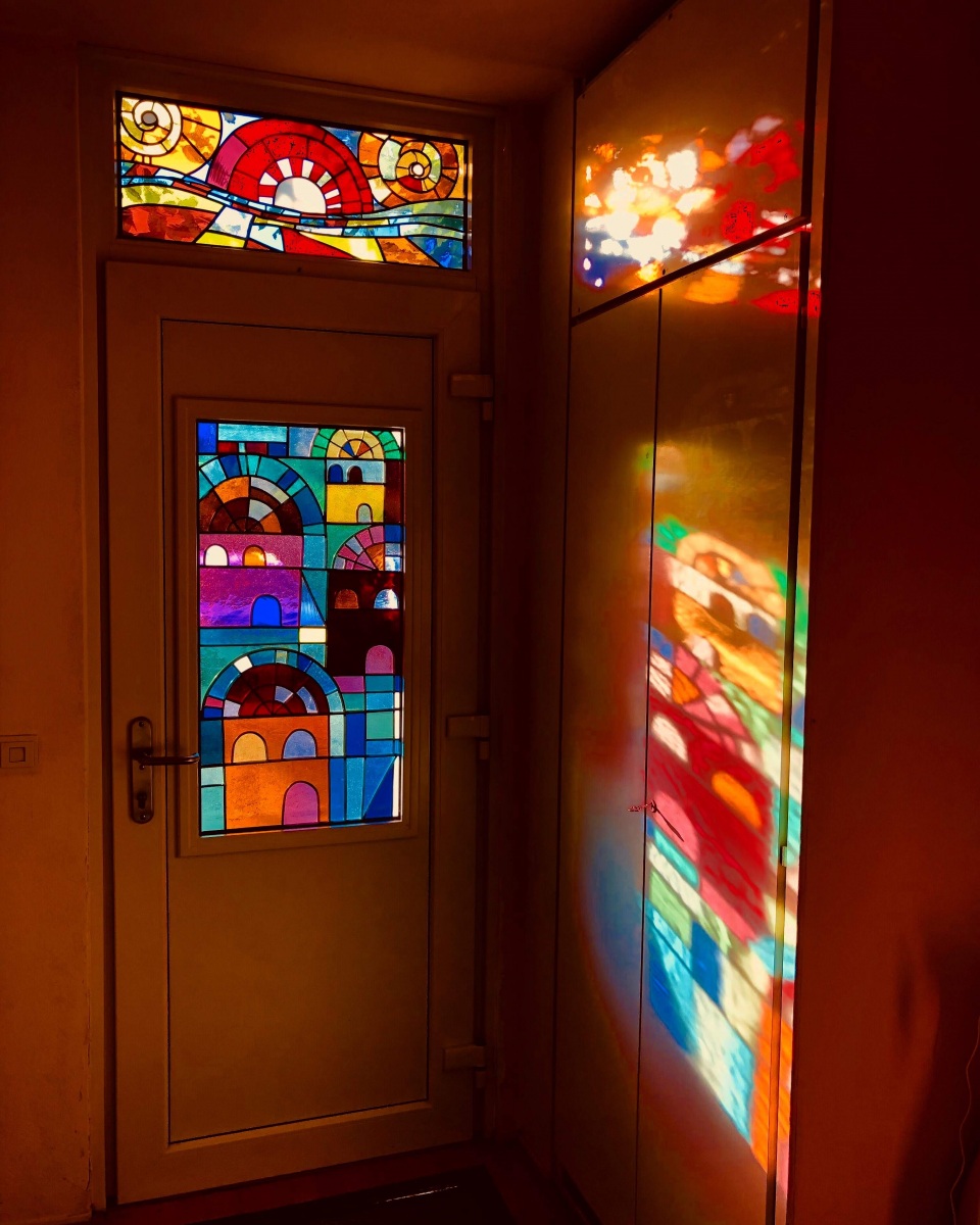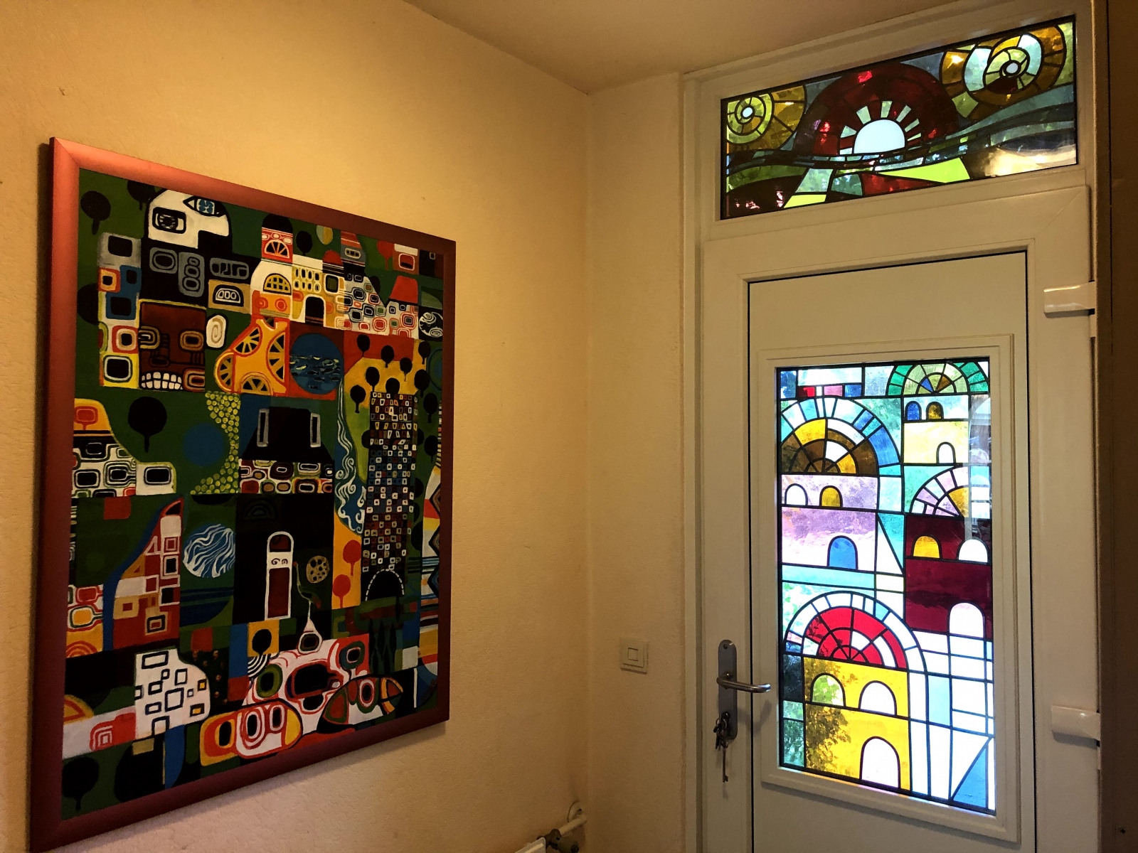Below you find some pixtures of stained glass art designed by me, Huub Ragas. It is possible to have you a stained glass artwork designed after your own wishes. I work with glasatelier Tegenlicht (Tilburg, Netherlands). For more information, see below.